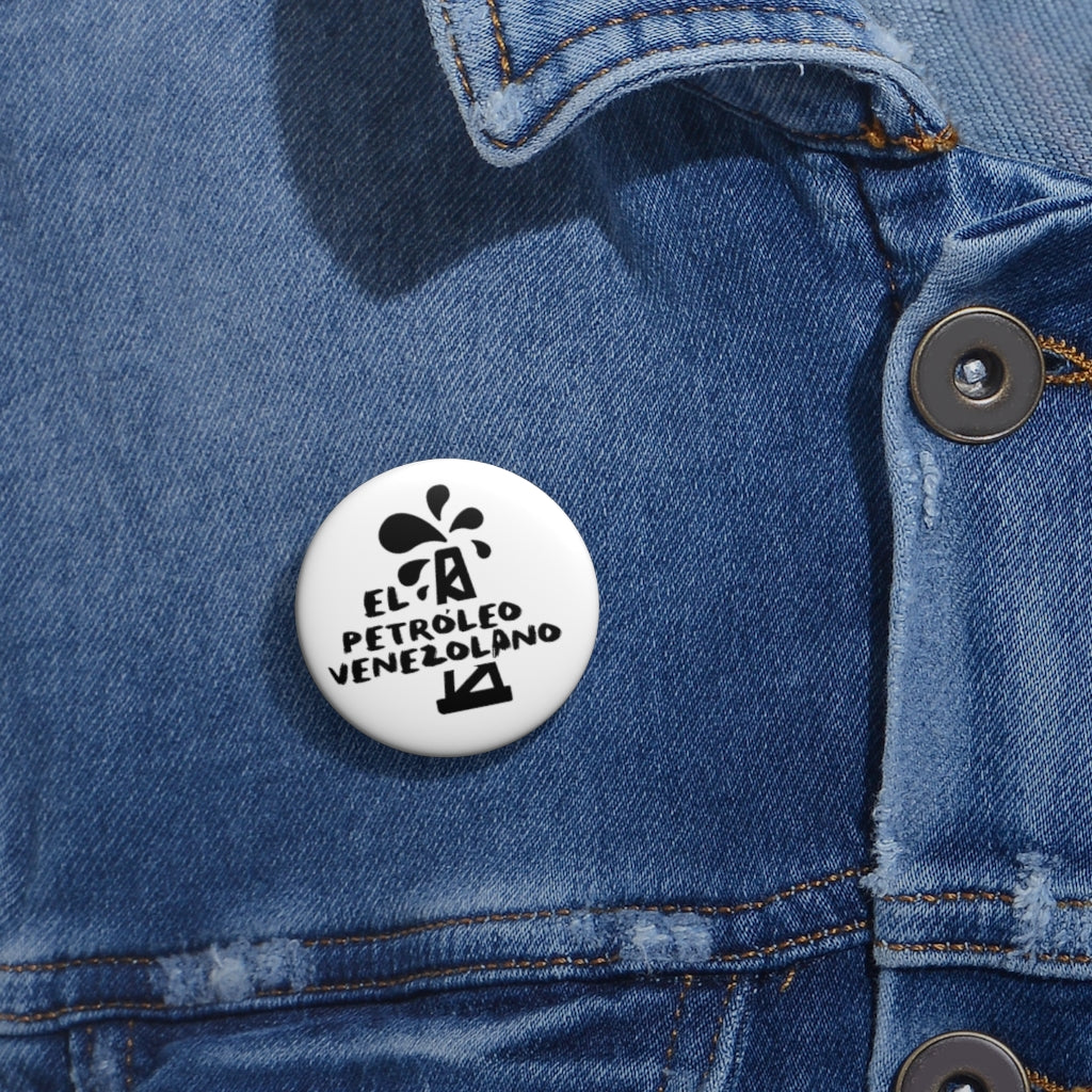 Chapa metalizada El Petroleo Venezolano. Fabricada en Estados Unidos con alfiler y sistema de cierre seguro.